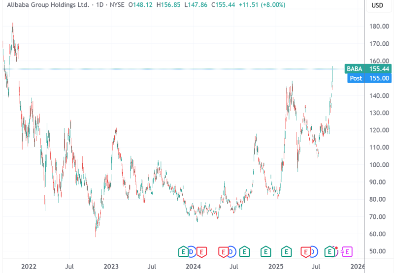 AI的利好也照耀到中国股民身上。阿里巴巴美股隔夜暴涨8%,不仅强势突破3月底的前高,也刷新2021年底以来的新高。
