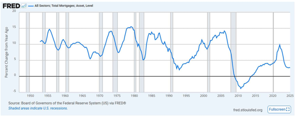 目前美国房贷增速已经是60年以来的第三低了,就比次贷危机和储贷危机更高一点。