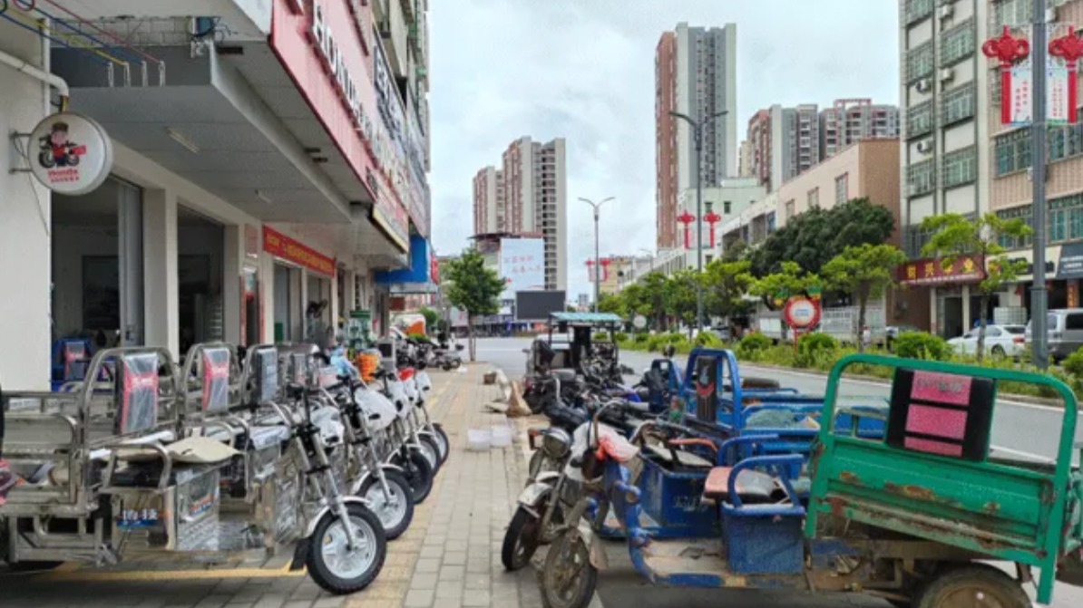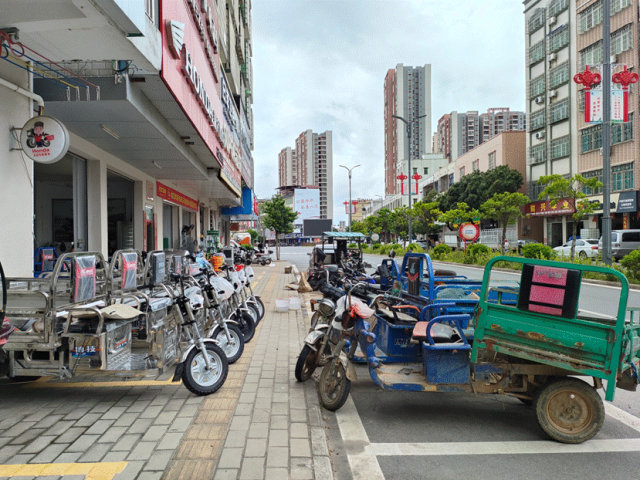 第二,当地经济活跃度高,货运、物流体量大,有很多的货运车经过,民间经济也很活跃,不仅有大量日常出行所需的电动车销售,还有很多等待报废的电动三轮车,这一类车辆大多用于生产、销售、运输等环节,属于生产工具类别,此类车辆也有很多,侧面反映当地民间经济的活跃度较高。