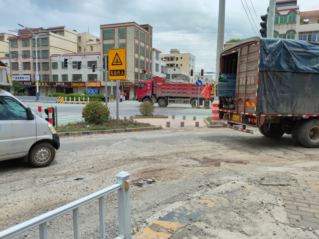 三是被挤压的马路,过马路的间隙,同行伙伴指着被压扁的马路,“柏油路能被压成这样,应该是有很多大型货运车经过”。是的,仅是我们说话期间,已经有好几辆大货车在路上穿行,而后伴随着轰隆隆的声响扬尘而去,又跟着另一辆大货车奔驰而来、扬长而去。