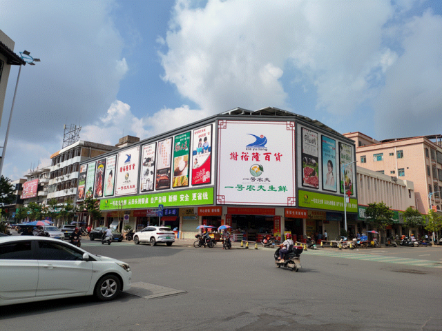二是大小超市聚集,沿途我们发现了一家大型超市,门牌logo很大,离了好一段距离都拍不全店名。超市门口沿路停着三四位摩的司机,问我们要不要坐车,笔者感觉一秒回到老家的县城,县城里红火的商场和集贸市场外常有摩的司机,竟没想到在乡镇也能够见到。