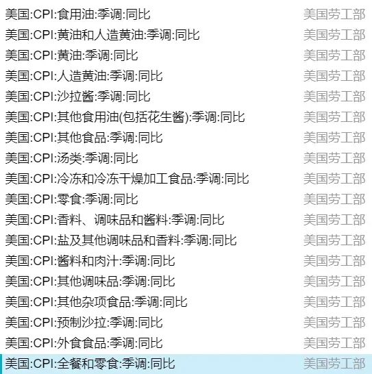 顺便说句,你可以质疑老美数据不可靠,但打下的数据基础和统计门类是真齐全(人造黄油、预制沙拉、汤、酱料和肉汁都有单独统计)。