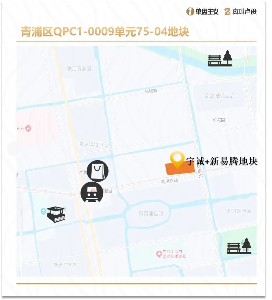 相似背景的新易腾和宇诚集团拿地策略同样如此:青浦区QPC1-0009单元75-04地块,地块体量较小,较为方正,容积率仅为1.79,同样没有配建保障房要求,小户型的比例也只有40%。