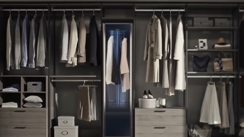 三星研发的衣服护理机AirDresser,柜内上下都有蒸汽喷头,还内置除臭过滤器,可消除因烟雾、汗水和食物残留在织物中99%的气味,羊毛服装可100%除皱,而人造纤维除皱率可达80%左右,自带烘干、香薰功能,还能通过专用的程序实现远程控制。(via Youtube:Samsung | Airdresser 翻译:赛博朋克通道)