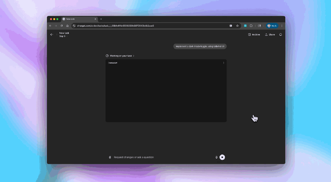 全新的IDE插件支持VS Code、Cursor等编辑器,让用户能无缝预览本地修改并与Codex协作编辑代码。插件还支持在云端与本地环境间流畅切换,可以直接在编辑器中创建云端任务、跟踪进行中的工作,以及审查已完成的任务。
