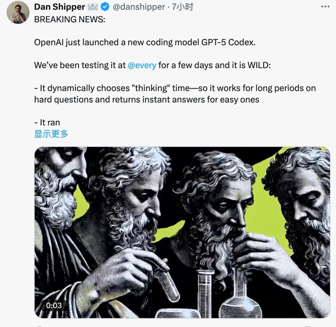 知名博主Dan Shipper在体验完GPT-5-Codex之后,给出的评价是: