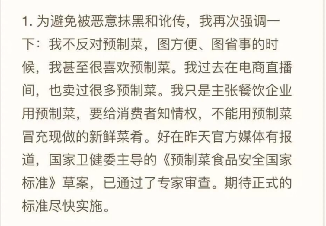 有人会提出,老罗不反对预制菜,他的诉求是满足消费者知情权:标注预制菜,才能让我有得选。