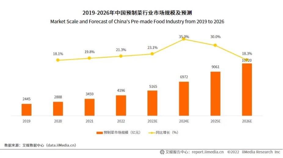 中国预制菜行业市场规模及预测 | 图片来源:艾媒咨询《2022年中国预制菜产业发展白皮书》