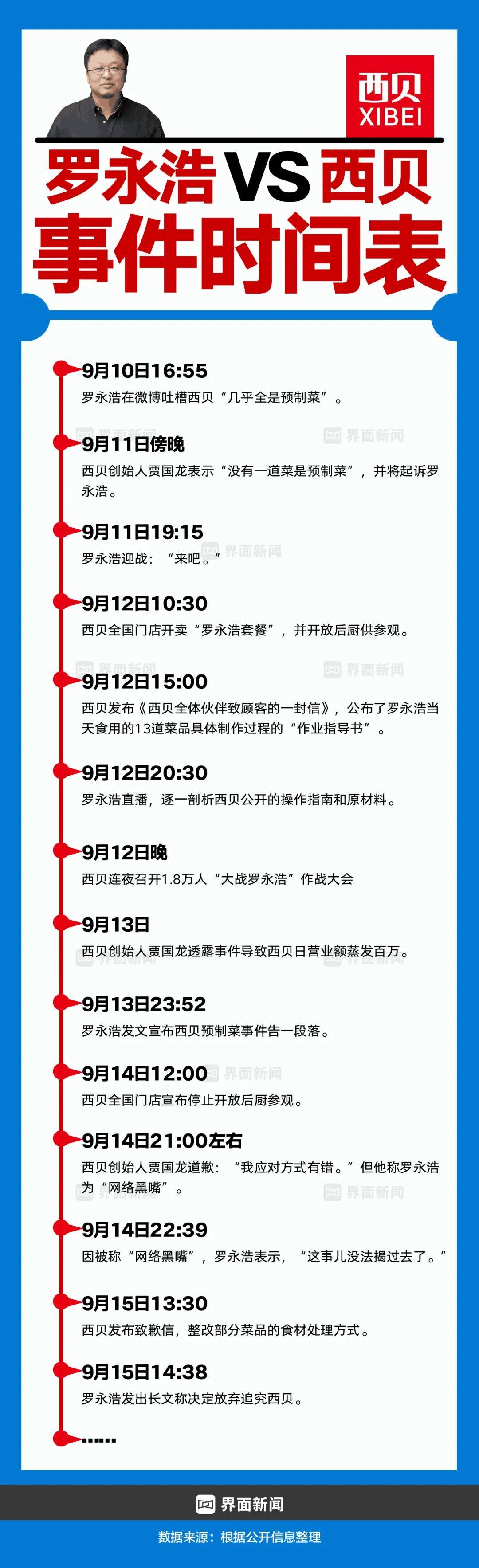 9月15日晚6点38分,罗永浩发出长文“收兵”,称决定放弃追究西贝。
