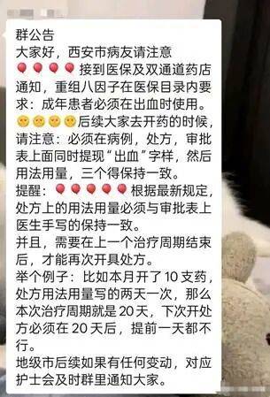 多名血友病患者告诉凤凰网《风暴眼》,类似的政策正在多地陆续施行,有些地方限开一两周的药量,居住在农村县城的患者,不得不花费高昂的路费,频繁往返大城市的三甲医院拿药。病友们有些不知所措,在群里、贴吧互通着消息——有地方不只需要空瓶,还要带上自己用药的视频;有地方需要在一个治疗周期结束之后,才能再次开具处方。