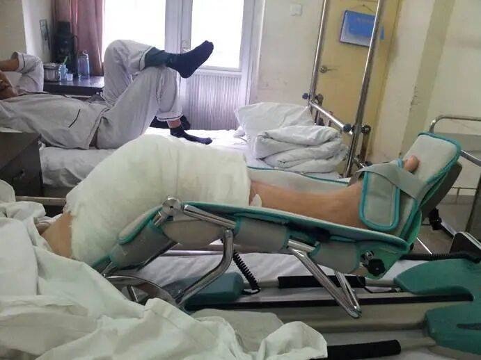 他至今记得2008年那次严重的膝关节出血。他的脚根本不能落地,就连静坐时小腿自然下垂,肿胀的刺痛也令人窒息。“肿得表皮紧绷发亮,心脏每跳一下,膝关节就跟着抽痛一下”。剧痛持续了几天几夜,他生生地捂在被子里,任汗水直流。掀开被子时,能看见从他身上蒸腾起一层稀薄的汗雾。