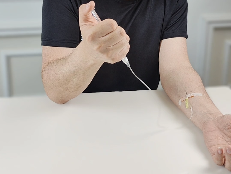血友病患者为自己注射凝血因子。受访者供图