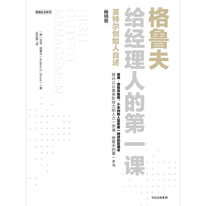 在《格鲁夫给经理人的第一课》一书中,安迪·格鲁夫几乎在手把手教你如何做管理。比如,重新定义经理人的产出、如何聚焦高杠杆率活动、怎样建立科学时间管理体系……书中全是攸关每一位中层管理者业绩表现的实战技巧。