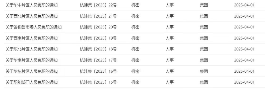 一方面,管理层人员调动频频。4月,娃哈哈集团连发8则人员免职通知,涉及大批原娃哈哈集团中高层。知情人士向《BUG》栏目表示,本次调整属实,内部已经下发正式通知。本次调整涉及包括华中、西北、西南、东北等多个片区,还囊括了各销售市场和职能部门的人员调整。