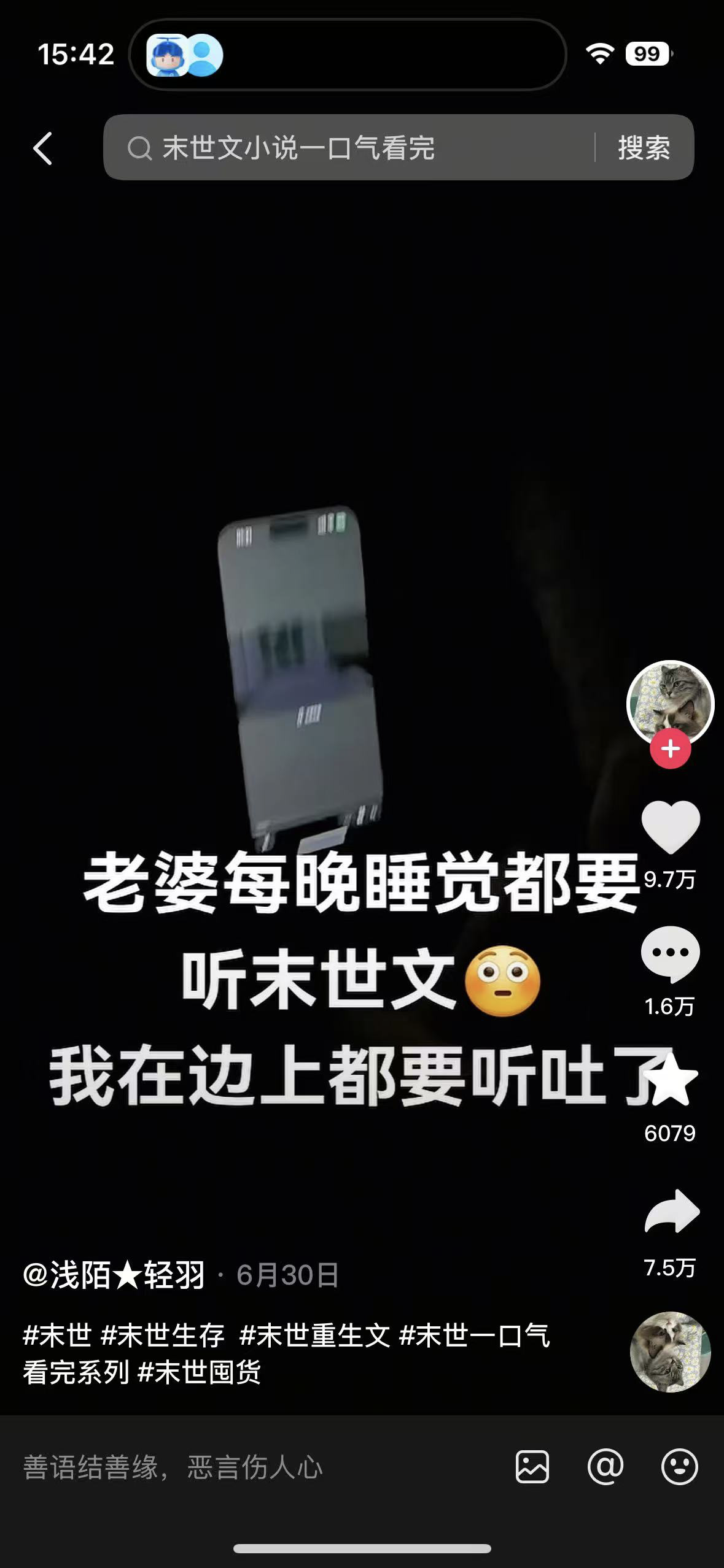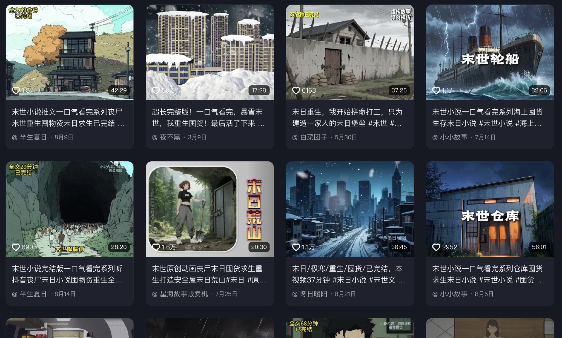在抖音流行的末日重生题材里,这种想象被放大了。故事中没有复杂的人性博弈,也没有冷酷的社会实验,只有主角凭借重生的“天眼”在世界崩坏前丝滑闯关。这种轻快的叙事,与现实中层层累积、难解难分的焦虑,形成了鲜明的对照。