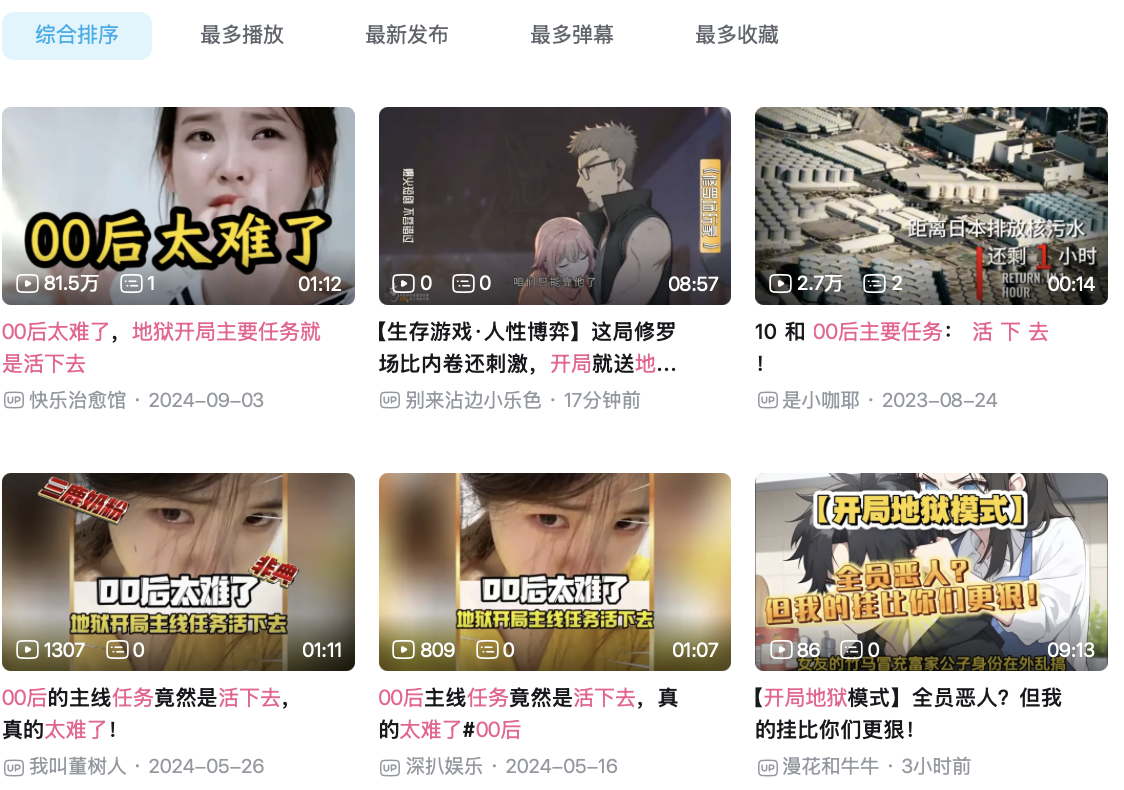 而在中国年轻一代更流行用最惨一代来形容自己,抱怨地球从出生到现在45亿年都没事,怎么啥坏事都到我这代聚齐儿了?以至于他们把自己的人生主线任务定义活下去。