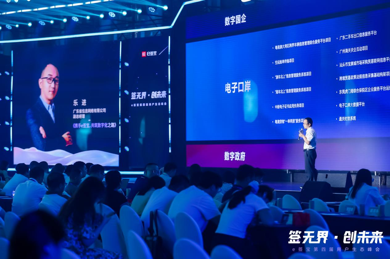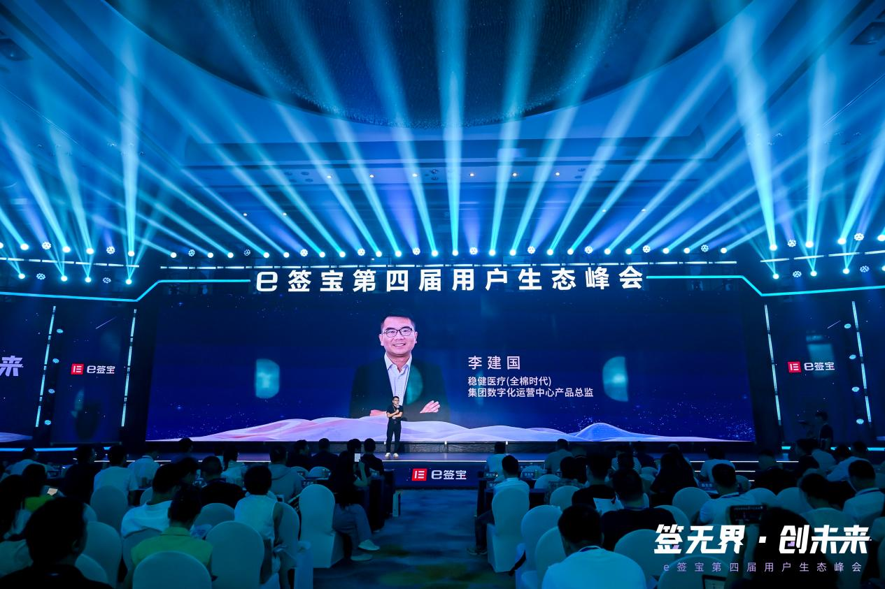 e签宝的成长离不开生态伙伴的长期支持与信任。峰会上,稳健医疗(全棉时代)集团数字化运营中心产品总监李建国、广东省信息网络有限公司副总经理乐进以及金蝶资深制造解决方案专家陈小平,分别分享了与e签宝合作推进数字化转型的实践经验,展示了电子签名技术在不同行业中的创新应用。