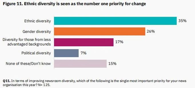 问题:对于以下不同类型的多样性,你所在新闻机构最想改善的是?图片来源:路透新闻研究院报告