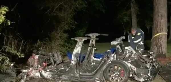 2021年4月17日,美国得克萨斯州哈里斯县,一辆特斯拉Model S在行驶中高速撞上一棵树后起火,最终造成车内的两名男性被烧死。