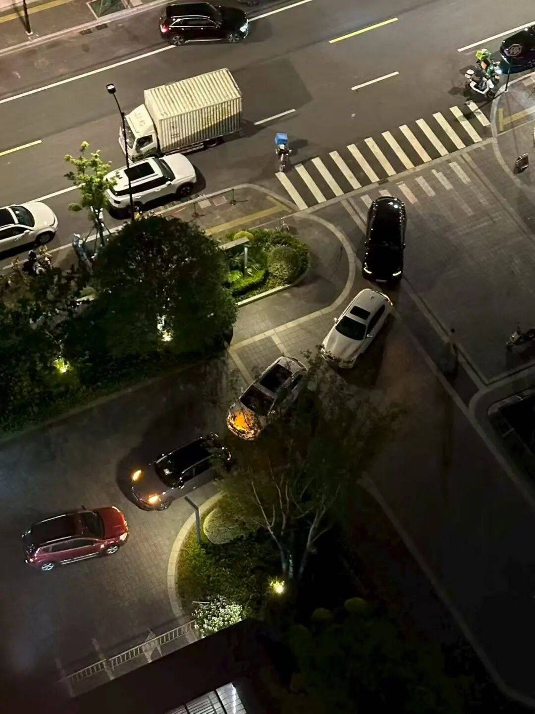 推倒隔离铁门当天,有公租房租户表示他们无法停车,把车辆堵在了地下车库的门口。目前事件还在调查中,未最终定性。(图/由受访者提供)