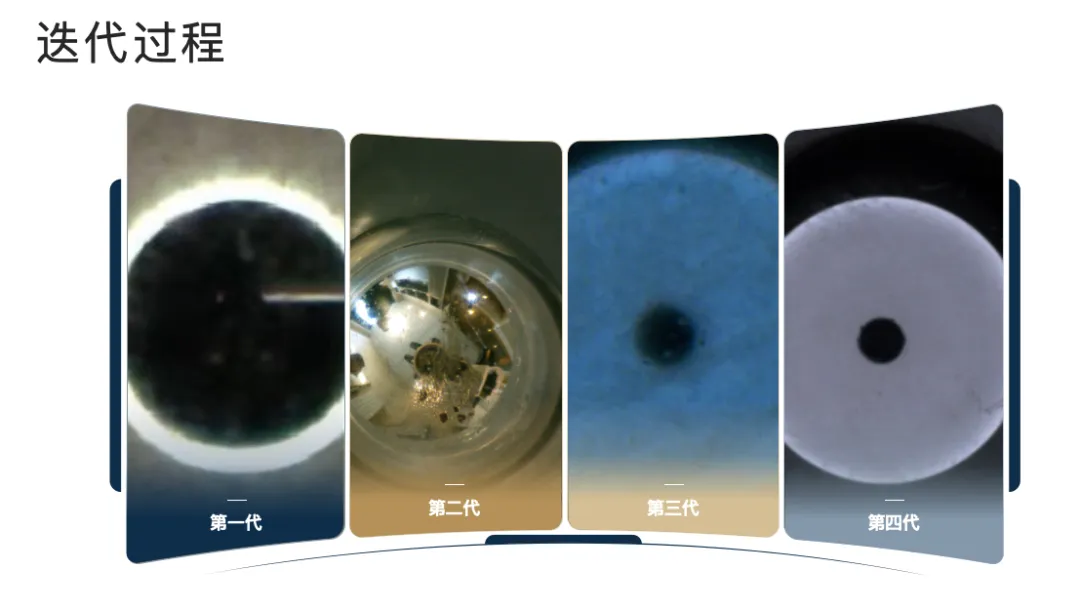 这听起来简单,但实际操作中问题一大堆。钢球表面有油污、会反光,不同车间的光线条件也不一样。为了解决这些问题,他们给相机加了带罩的可调灯箱,开机自动调亮度,保证无论在哪个车间拍照片都能保持一致的效果。我在下方放了一次次迭代的照片效果,你看,这才叫真正的小细节。
