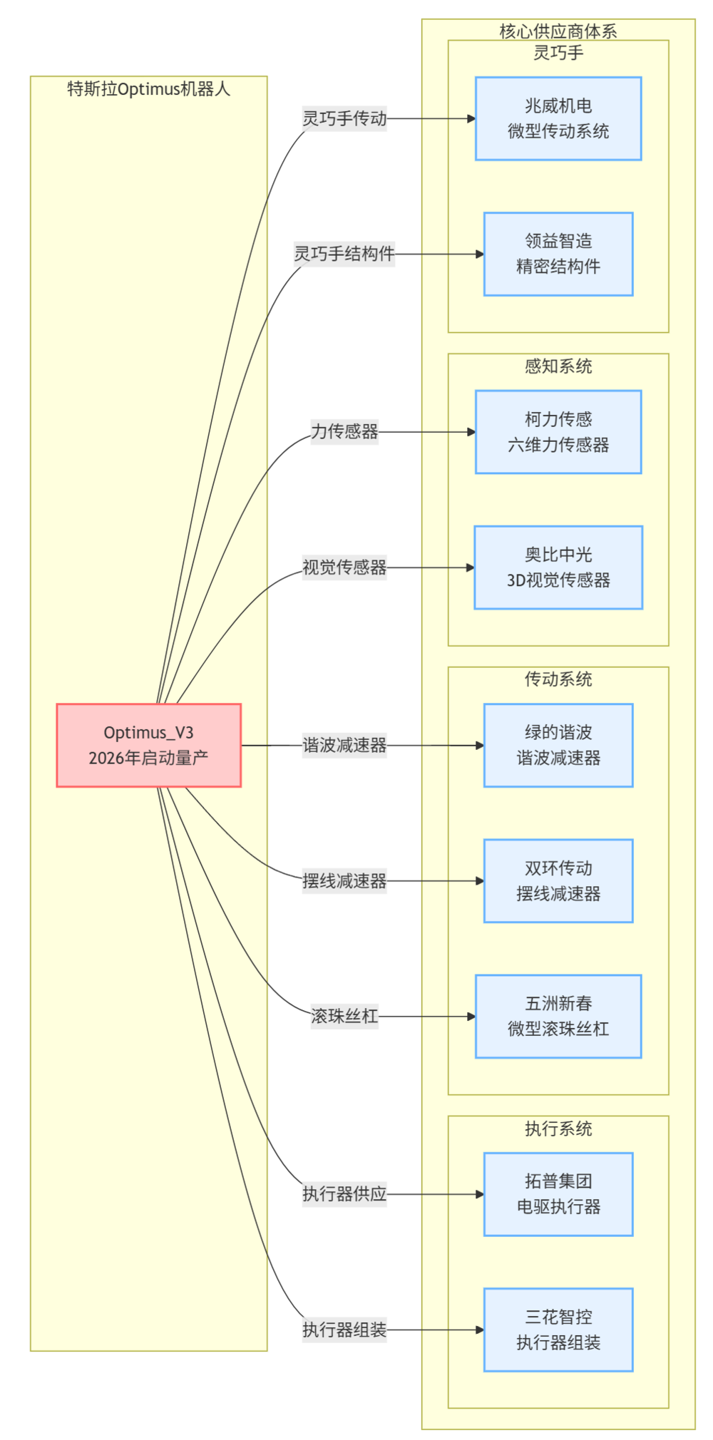 以下是 AlphaEngine 整理好的特斯拉机器人核心供应链图谱: