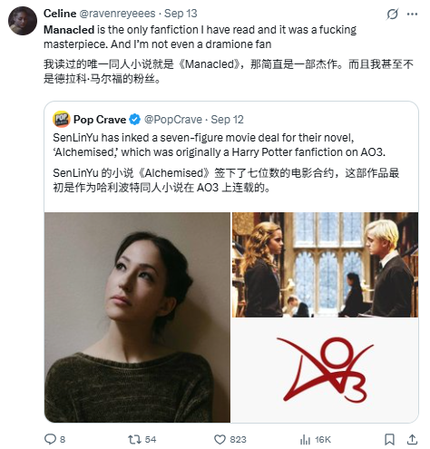全球的同人圈子都炸了。在中文社交平台上,一些人庆祝自己嗑的CP“出息了”,另一些人则开始担心版权问题:“这钱不应该给J·K·罗琳吗?”