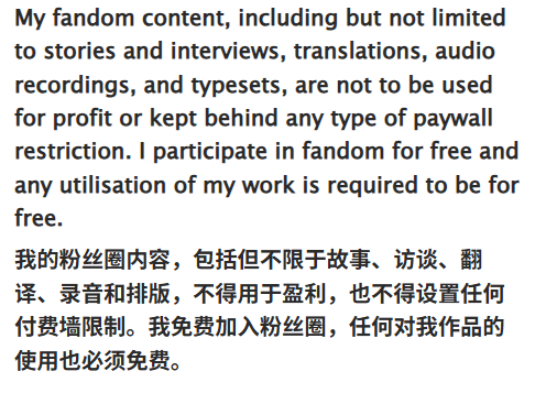同人社群里的大多数人都选择恪守这一准则、互相信任。毕竟,这是整个社群赖以维系的根基:正是出于“为爱发电”的关键,同人创作才能处在美国版权法中“合理使用”的安全区内。