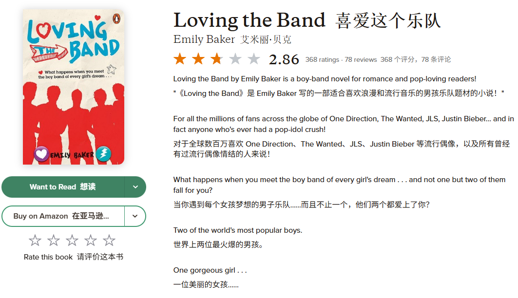 顺带一提,这本梦女文在Goodreads上的评分只有凄惨的2.86/5分