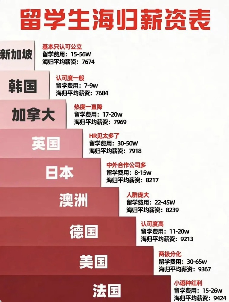 互联网流传的海归薪资表,可能并不完全准确,但却被反复转发。