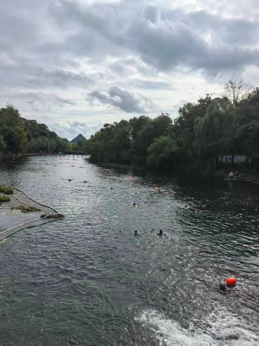 当年,平桥和花溪公园一带是野泳的聚集地。我大学的一位老师喜欢冬泳,就经常来这些地方。现如今,野泳已经没有了,但平桥一带的水域被开辟成市民游泳的地方。只见,从平桥一直往上游走,水面上全是游泳爱好者在自由游泳。