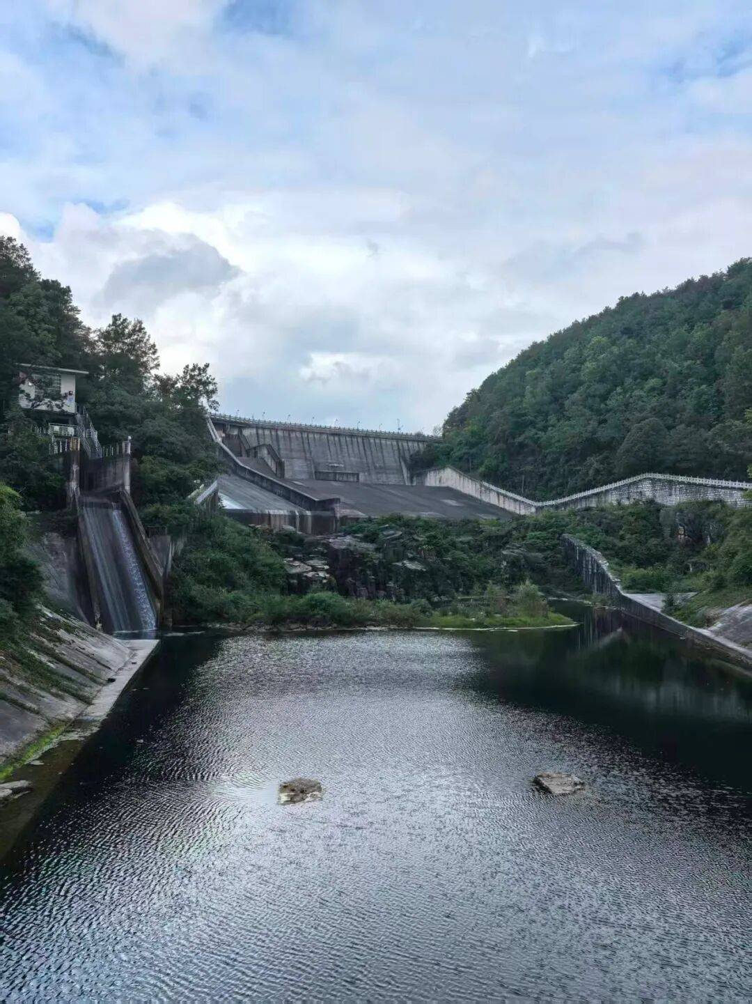 黄金大道的尽头,就到了水库脚下。水库大坝映入眼帘,雄伟壮观,工业文明的创造,是另一种硬核之美。当年,这里是烧烤的地方。有一次,我们贵大的几个老乡,把在贵阳求学的福建几十个老乡组织起来,浩浩荡荡跑去烧烤。烟雾缭绕,香气逼人,又饿又渴,吃了很多。