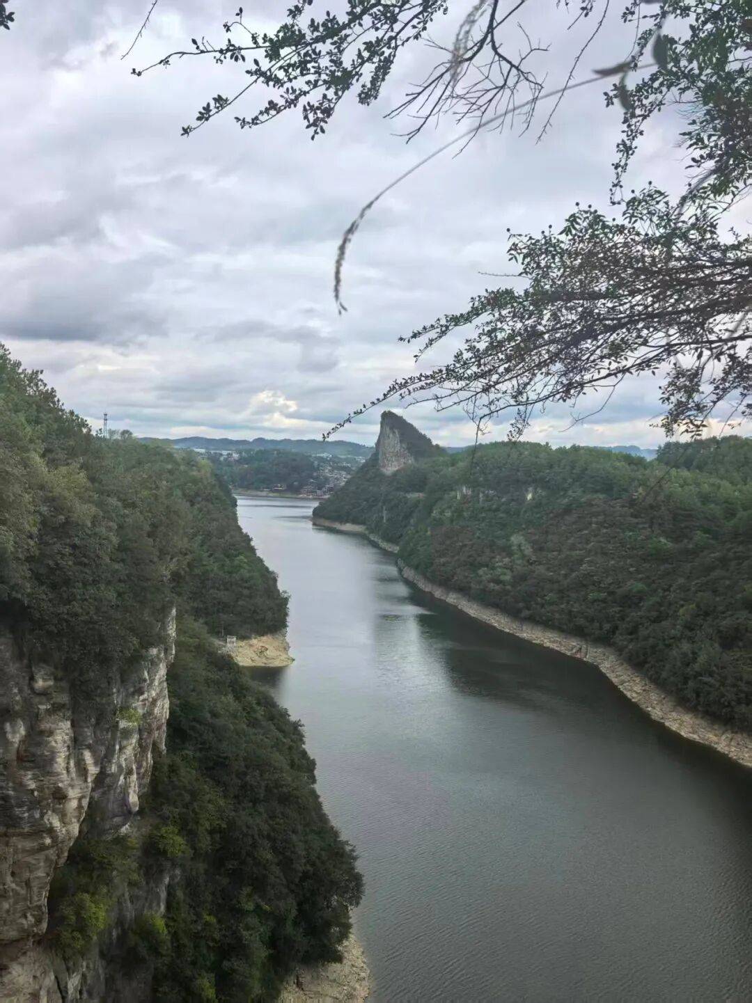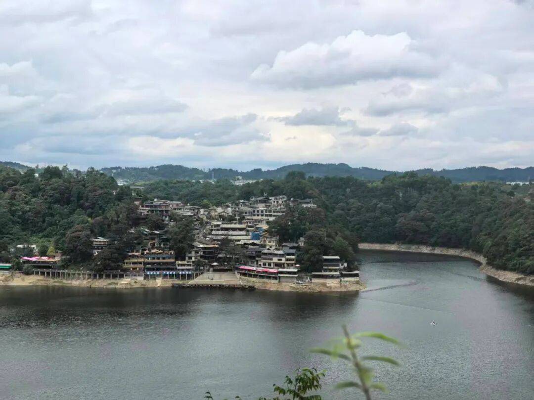我们继续往前走,到了我上大学期间热闹的地方,李村。当年,这里有农家乐,还有观景平台,对面就是镇山村。镇山村是一个布依族村寨,全是石板房,寨子沿河而建,从河边往山上蜿蜒。上学的时候,我们在这里划船,玩乐。
