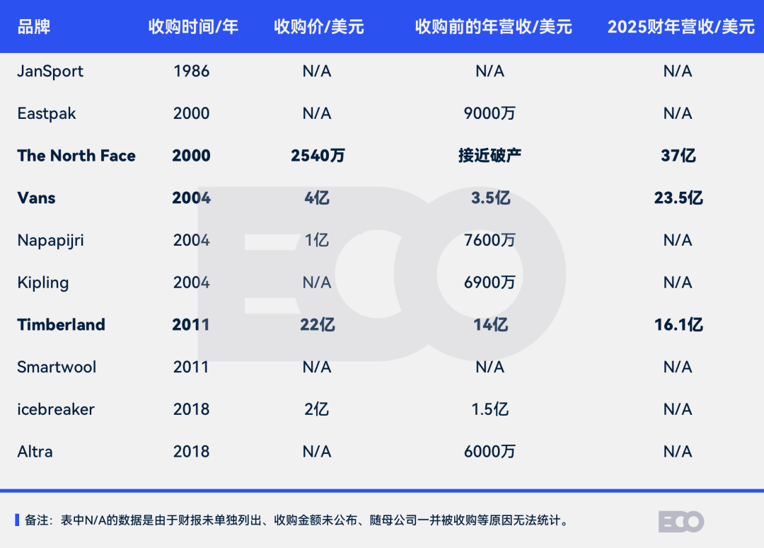 另外,用22亿美元买回来的Timberland,在集团内无论年营收还是优先级都赶不上低价抄底的Vans和The North Face,虽然2025财年营收实现正增长,但过去起落频繁,也在投资分析人员预测的「待售清单」中。