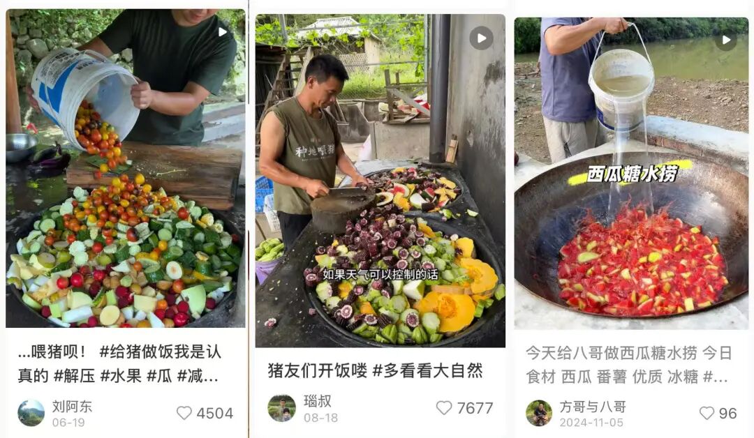 他从菜园摘下了黄瓜、茄子、南瓜、紫甘蓝,撒上调料添柴起锅,一通乱炖。
