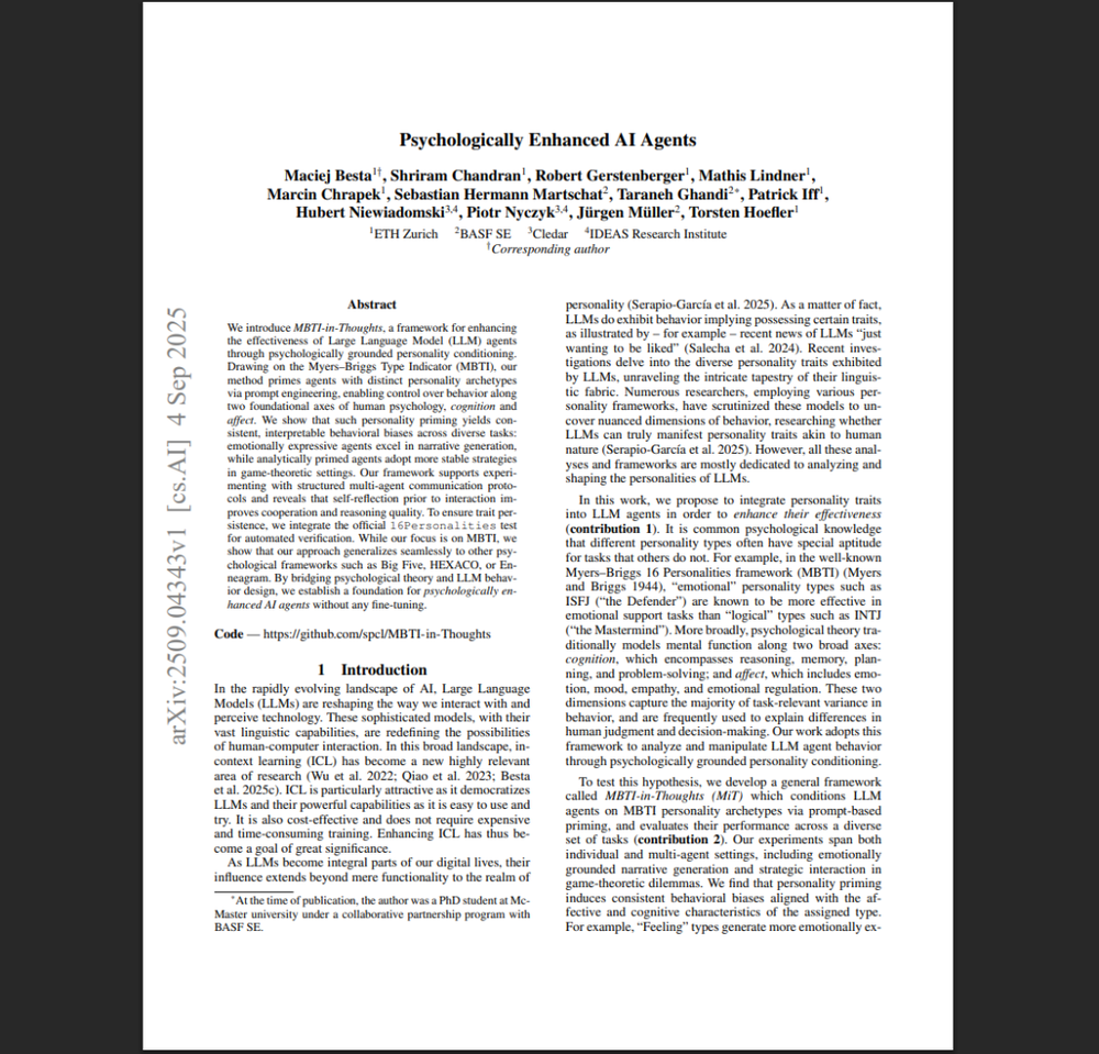 论文的标题很学术,叫《心理学增强AI智能体》。