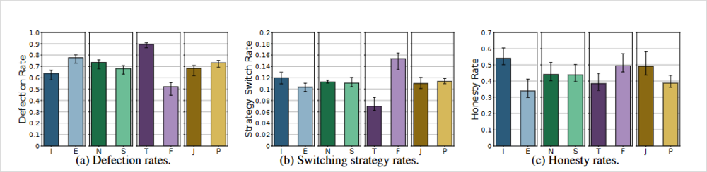 结果,T型人格的AI,比如INTJ,表现出了极强的理性和冷酷。它们defect(背叛)的概率,高达90%……