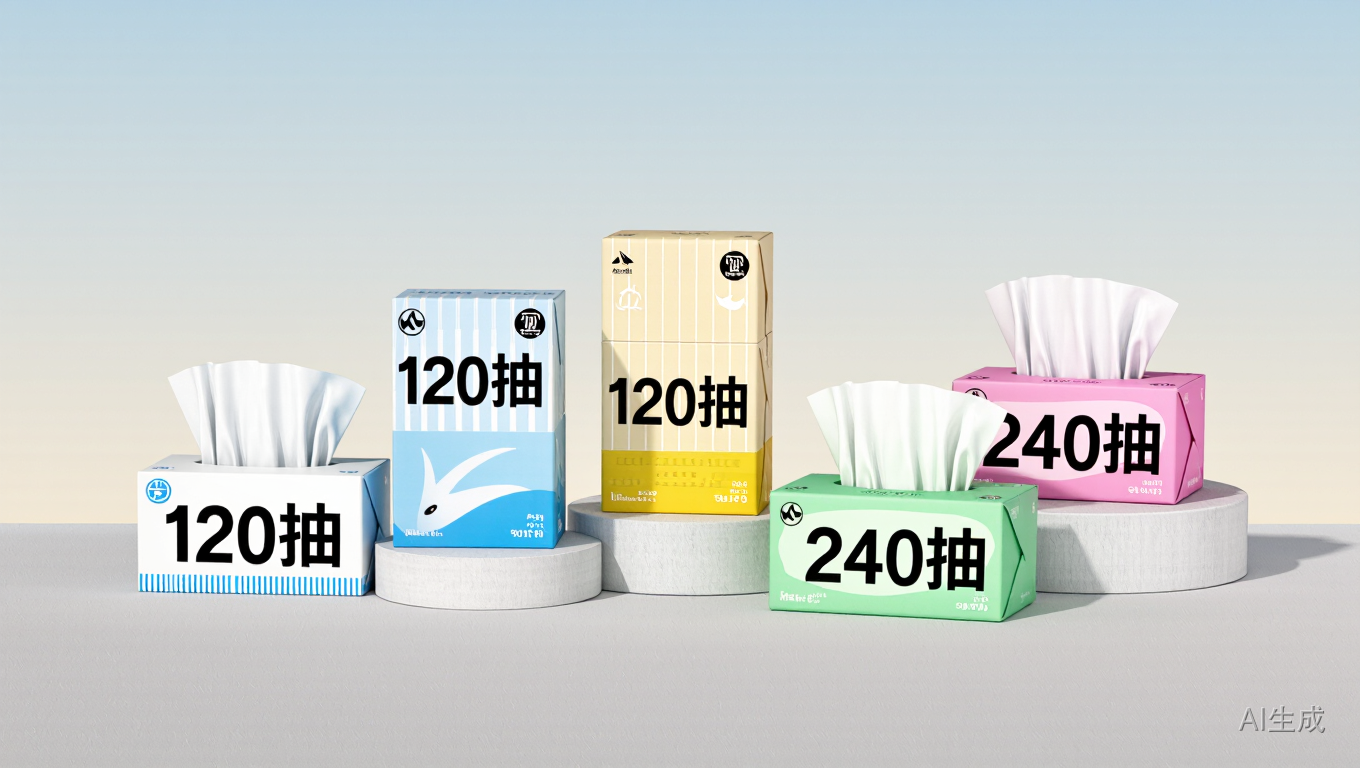 如果我不说,我猜很多像我一样的懒人可能都没怎么在意,现在纸巾的抽数和层数也有“满足不同使用需求”的操作。