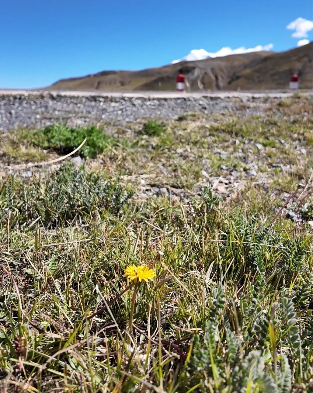 燃放烟花的这座山坡路边,放牛、种地都不成问题,旁边还有从雪山上流下来的潺潺溪流,除了4500米的海拔让人喘不上气,还真是一个发展农业的好地方;但再高一些,就只能长出小腿高的草,偶尔有不怕折腾的牧民赶着牦牛去吃;海拔到了5000米左右,植物和地皮快要融为一体了,生态系统更为简单。