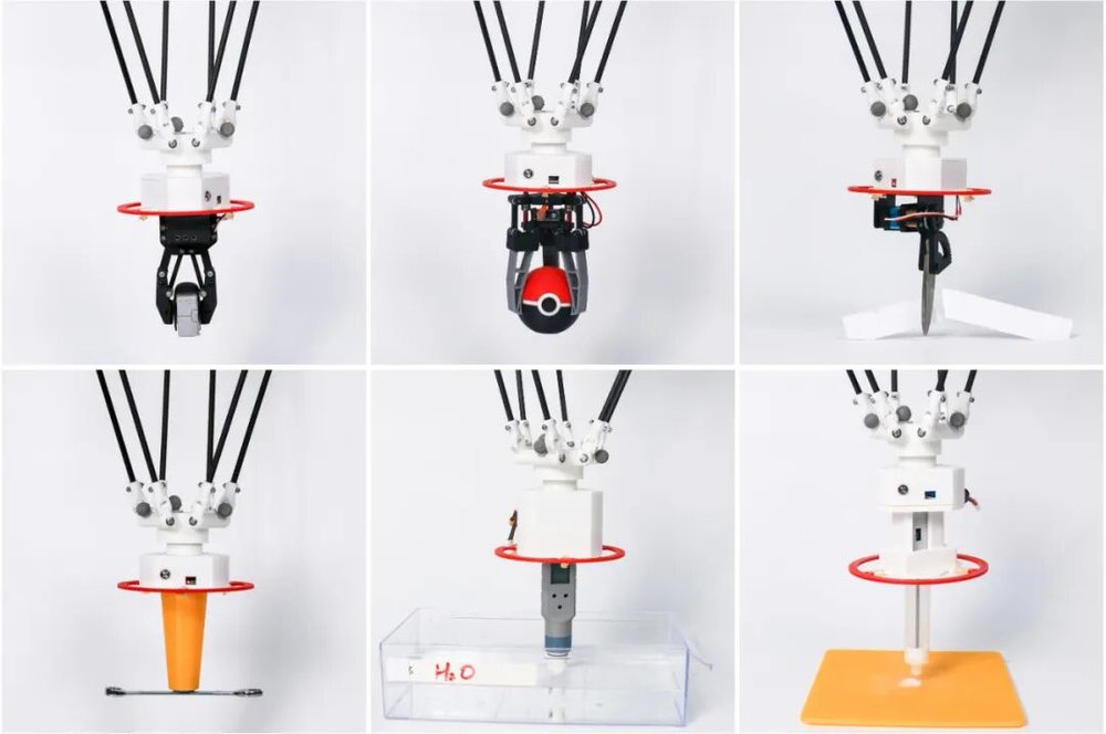 工具箱无人机,顾名思义,能够携带多种不同类型的末端执行工具,如爪子、剪刀等(见图2),你可以想象为护士手里那个装满各种手术器械的托盘。
