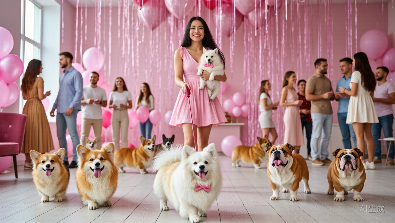 整个活动以粉红色为主色调,易拉宝上印着醒目的粉红字体:宠物相亲大会。