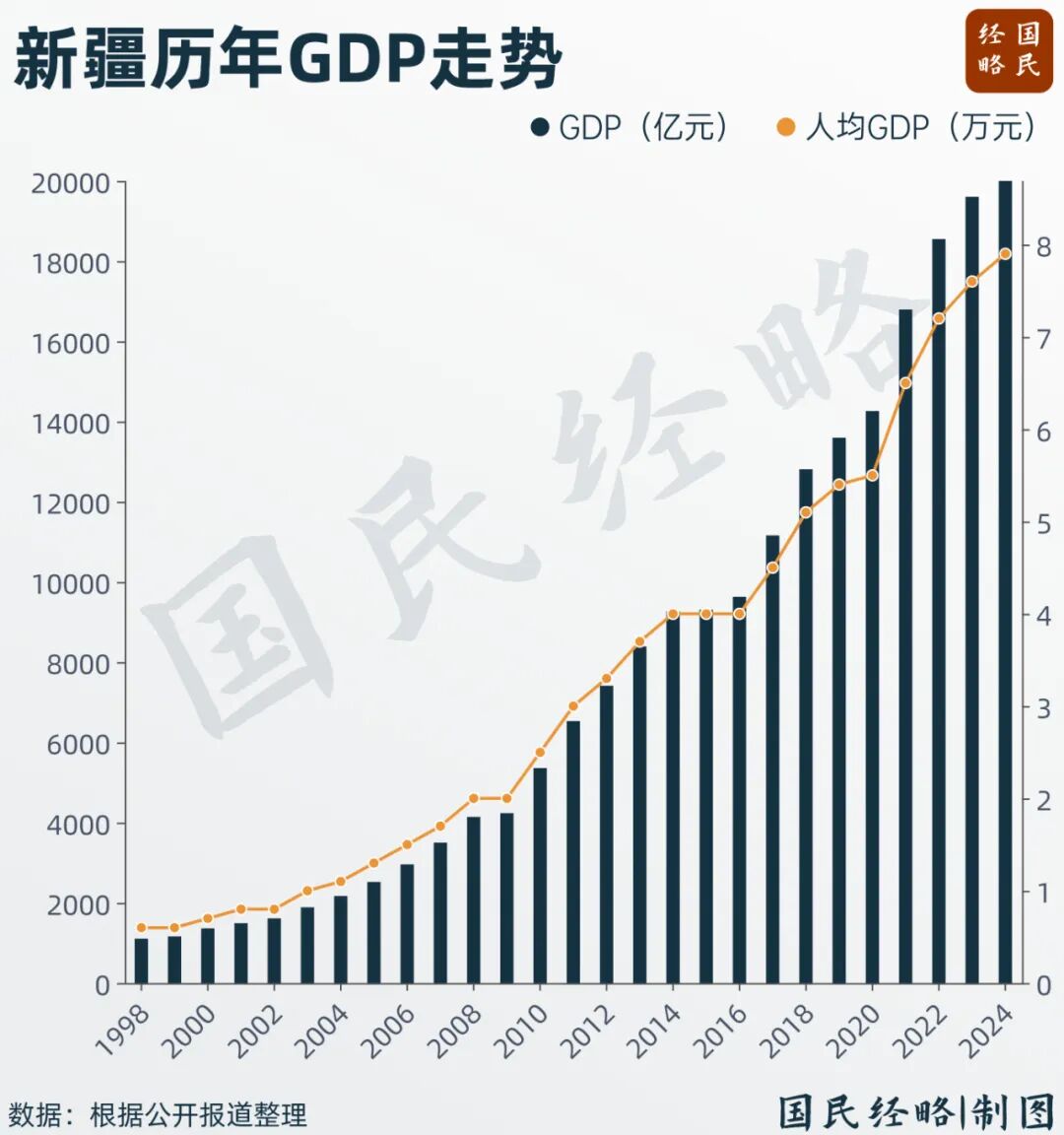 近年来,随着国家战略变迁、全球地缘格局重塑、中西部产业大转移加速,新疆经济逐步崛起。