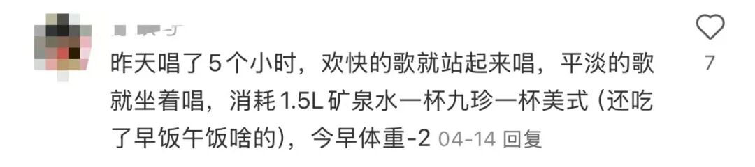 北漂阿俊说自己,最极端的一次,在包厢里唱了3个半小时,“开着运动手表,直接掉了将近1000大卡,要知道这个消耗量,大概需要1小时力量训练,2小时有氧,顺带全天消耗才能达到。”