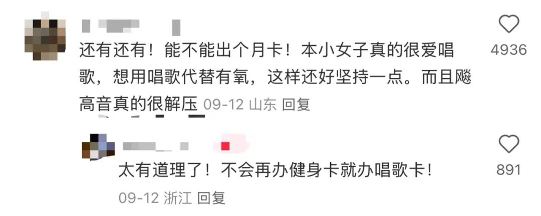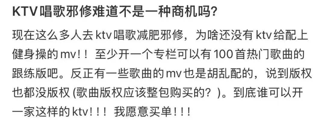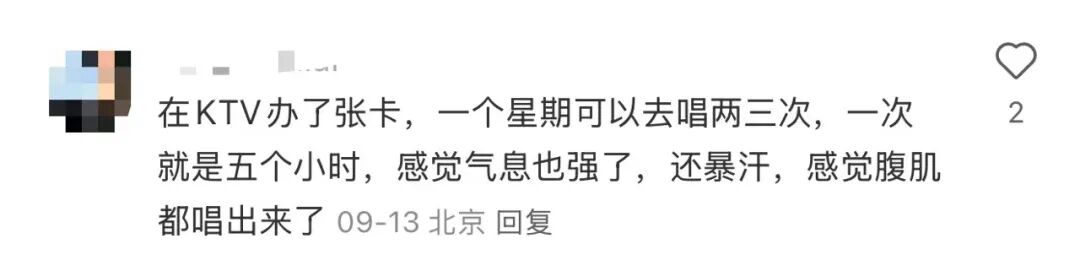 “比起跑步机上盯着时间一点点过去,在KTV里,时间是飞逝的,你甚至会希望多唱几首,把身上这股劲儿全都用干净。”