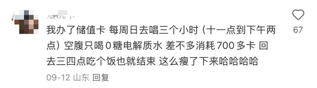 有人把这种玩法叫做“怒唱局”,点满快歌,边唱边跳,一小时能消耗140到200大卡,唱满2个小时,相当于慢跑40分钟。20块钱的团购券,就能完成一次社恐友好型燃脂课。