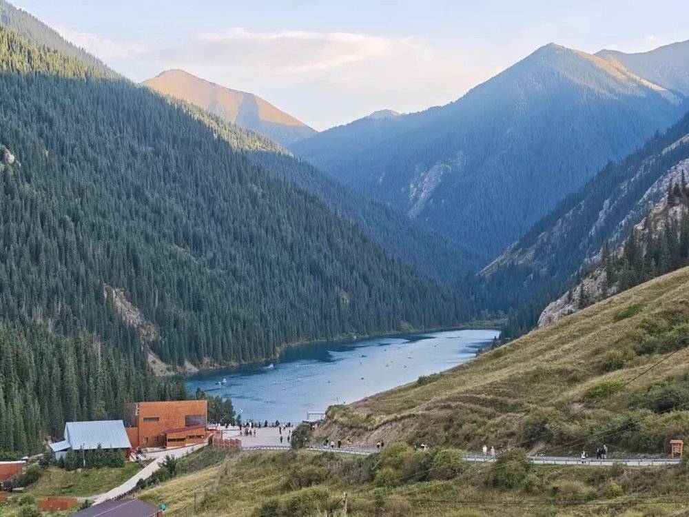离开峡谷,我们去了哈萨克斯坦著名的科尔塞湖。这是哈萨克斯坦境内最美的高山湖泊之一,湖水清澈见底,四周被高山环绕。看到的第一眼,我一下想起九寨沟的“长海”。湖水在阳光的照耀下呈现出不同层次的蓝色,从翠绿到深蓝,宛如一块镶嵌在群山之间的宝石。四周静谧的群山倒映在湖面上,偶尔有微风吹过,荡起层层涟漪,仿佛将整个自然的美景轻轻摇曳。