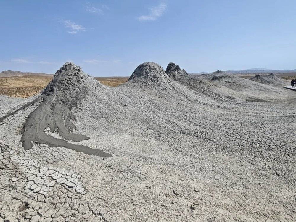第一站去了泥火山,离巴库市区约半小时车程,这些泥火山是阿塞拜疆自然奇观之一,也是世界上独一无二的地质现象。泥火山喷发时,会从地壳深处喷出泥浆、气体和少量液体,形成一个个形态各异的泥丘。站在泥火山口边沿,可以闻到淡淡的硫磺味道,耳边不时传来气泡破裂的轻微响声,仿佛大地在低声诉说着它内心的躁动与力量。