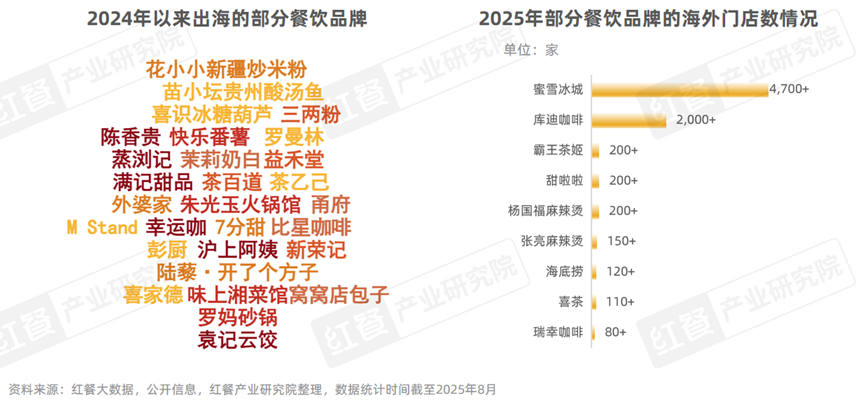 值得注意的是,步入2025年以后,品牌对海外市场的态度趋于理性和谨慎。除库迪咖啡、霸王茶姬、喜茶等部分饮品品牌仍保持较快的海外扩张步伐外,多数品牌选择放慢开店速度,转而聚焦于提升海外门店的运营质量。