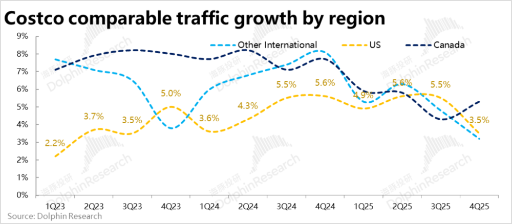 类似的,加拿大地区则因本就客流量增速依然不错,同店销售增速也并未明显下滑。