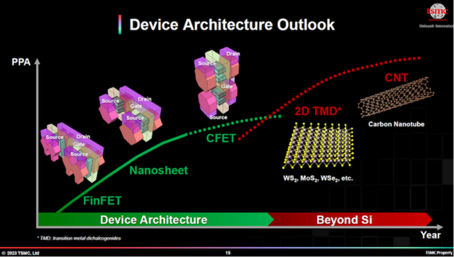 三星同样使用GAA结构,也搭载了BSPDN技术;同时,三星可能引入2D材料、CPO(光电共封装)等技术。